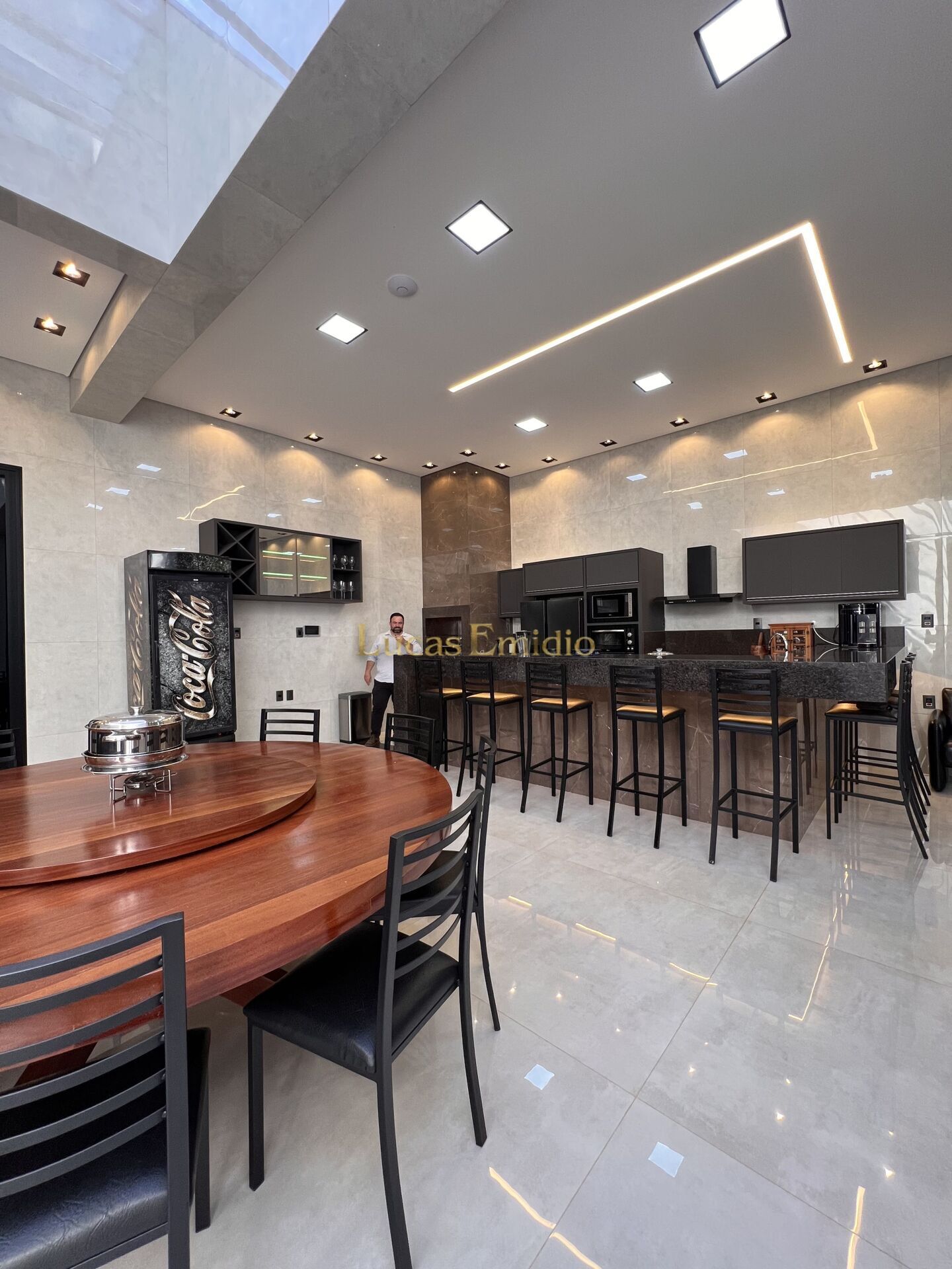 ✅ Cozinha Gourmet ampla com pé direito de 4m e parte do teto com toldo retrátil automático