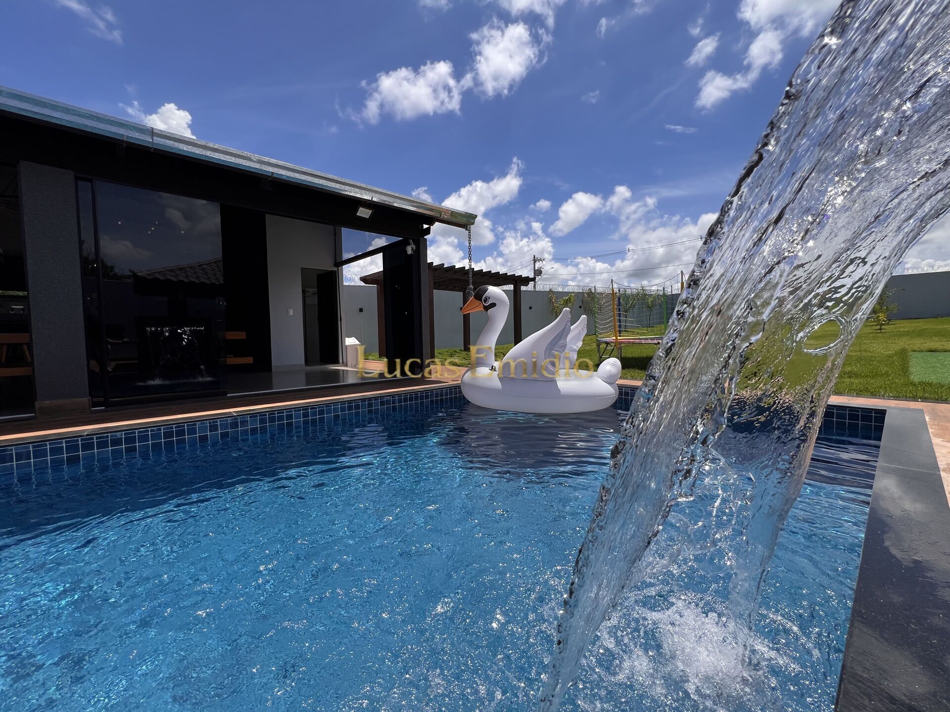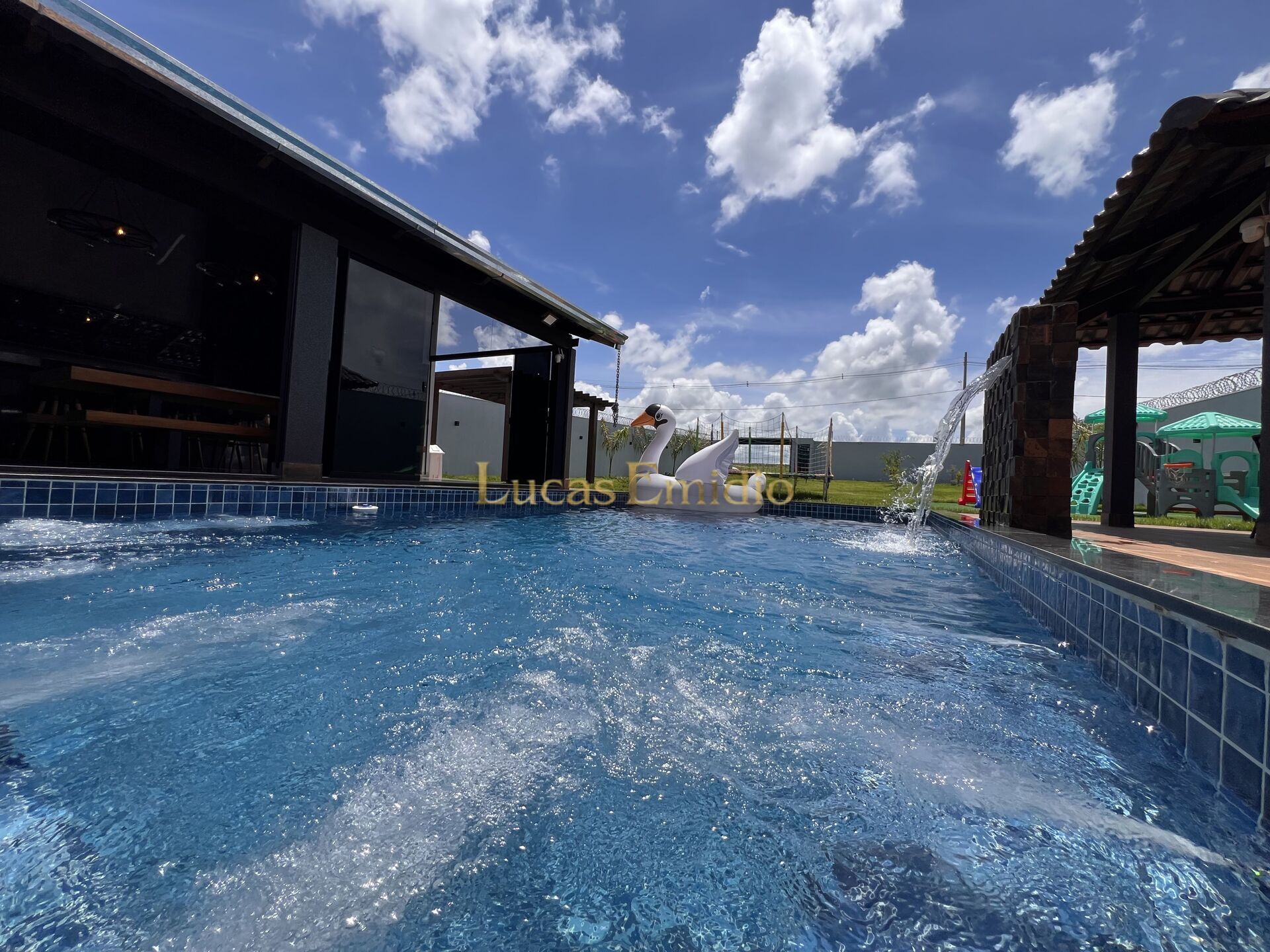 🏊♂️ Piscina em alvenaria de 40 mil litros, com cascata, prainha aquecida e acabamento impecável